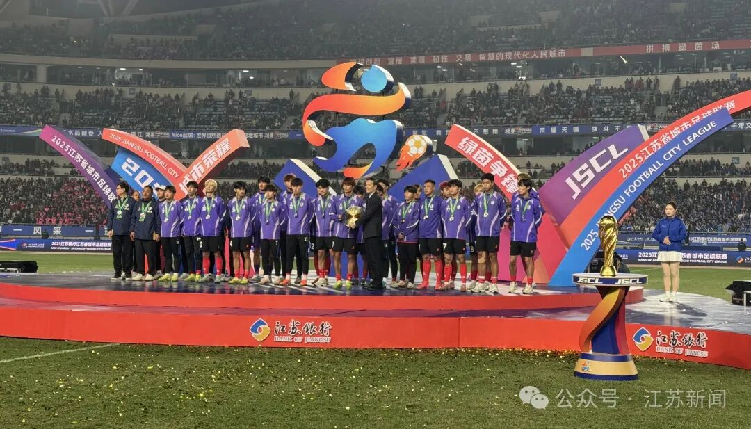 2025年11月1日晚,2025江苏省城市足球联赛决赛落幕。本场比赛由国缘V3特约转播。90分钟常规时间泰州队和南通队0比0战平。“苏超”决赛上演点球大战。最终,泰州队点球4比3战胜南通队,获得“苏超”冠军。江苏省委书记信长星亲自为冠军队颁奖。