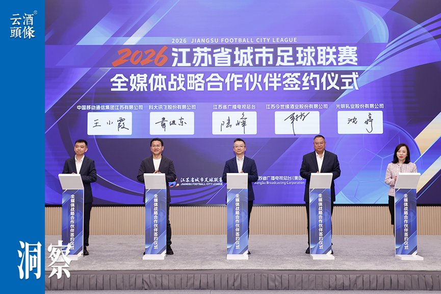 4月11日,新赛季“苏超”即将开赛。连续两届蝉联“苏超”官方战略合作伙伴国缘V3,又有了新的身份。4月2日,2026江苏省城市足球联赛(以下简称“苏超”)官方主播机构授牌仪式暨全媒体合作伙伴签约仪式在南京举行,今世缘副总经理羊栋出席签约仪式,国缘V3又成为全媒体合作伙伴。